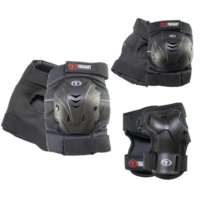 O Kit de Proteção DR-029 é um kit de proteção que contem um par de cotoveleiras, um par de joelheiras e um par de munhequeiras, todas feitas de plástico resistente, nylon e espuma. Estas peças você veste pois são feitos de elastano e depois ajusta com fita de velcro para melhor firmeza. Esse é um kit indicado para iniciantes e intermediários. Não é indicado para quem vai fazer a prática de street/vertical.
