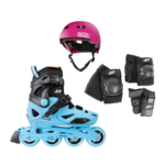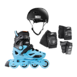 Categoria: Inline Infanto-Juvenil | Bota: Hardboot | Base: Plástico Reforçado | Freio: Sim | Rolamentos: ABEC-5 | Rodas: PU 62/64mm (M) 68/70mm (G) | Dureza: 83A | Cor: Azul | Suporta até: 60kg | Tamanhos: M (29-32) G (33-36)