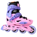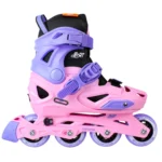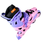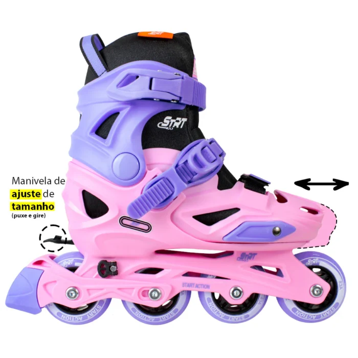 Categoria: Inline Infanto-Juvenil | Bota: Hardboot | Base: Plástico Reforçado | Freio: Sim | Rolamentos: ABEC-5 | Rodas: PU 62/64mm (M) 68/70mm (G) | Dureza: 83A | Cor: Rosa e Roxo | Suporta até: 60kg | Tamanhos: M (29-32) G (33-36)