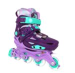 Categoria: Inline Infanto-Juvenil | Bota: Hardboot | Base: Plástico Reforçado | Freio: Sim | Rolamentos: ABEC-9 | Rodas: PU 68/70mm (M) 70/72mm (G) Dureza: 83A | Cor: Roxo/Rosa | Suporta até: 60kg | Tamanhos: M (29-32) G (33-36)