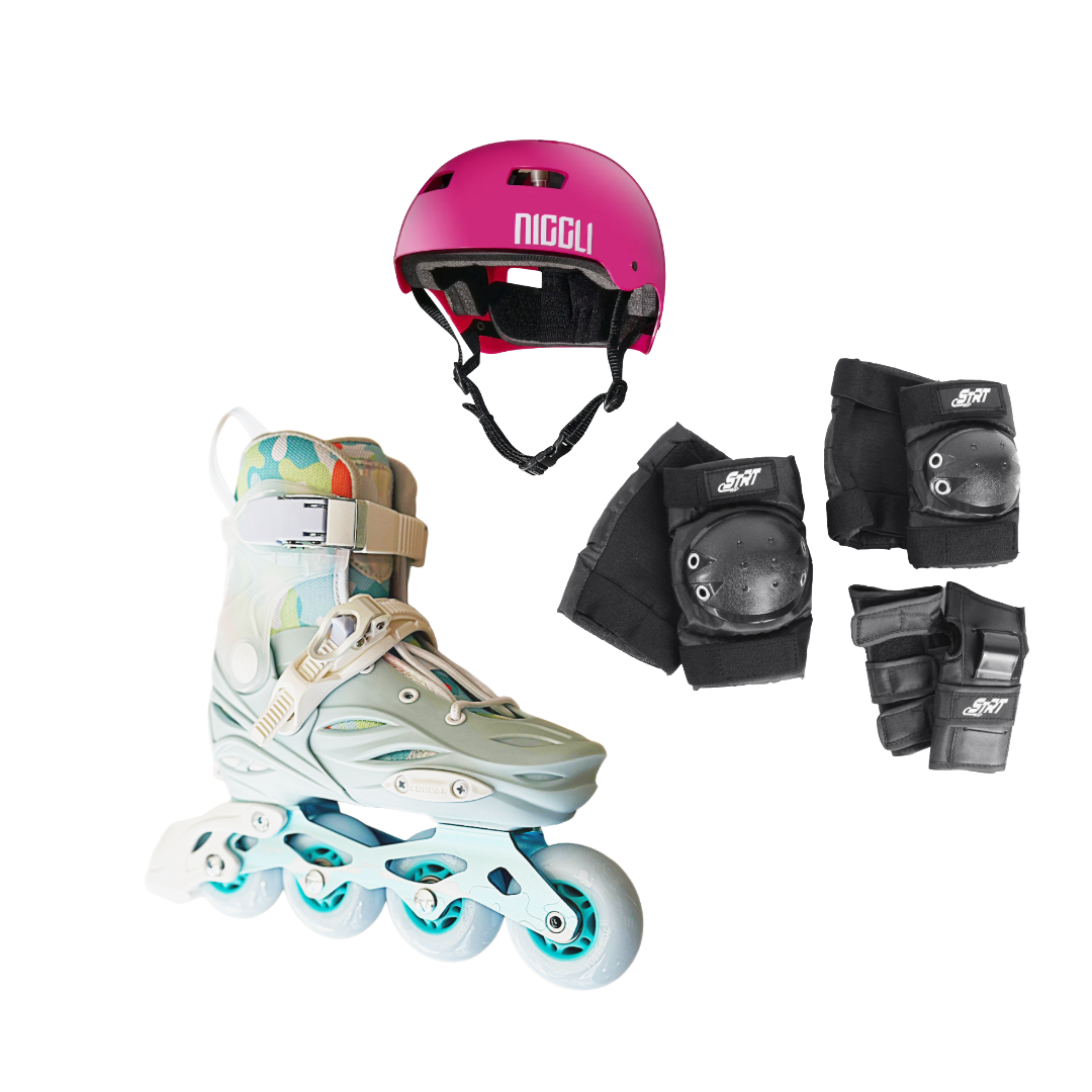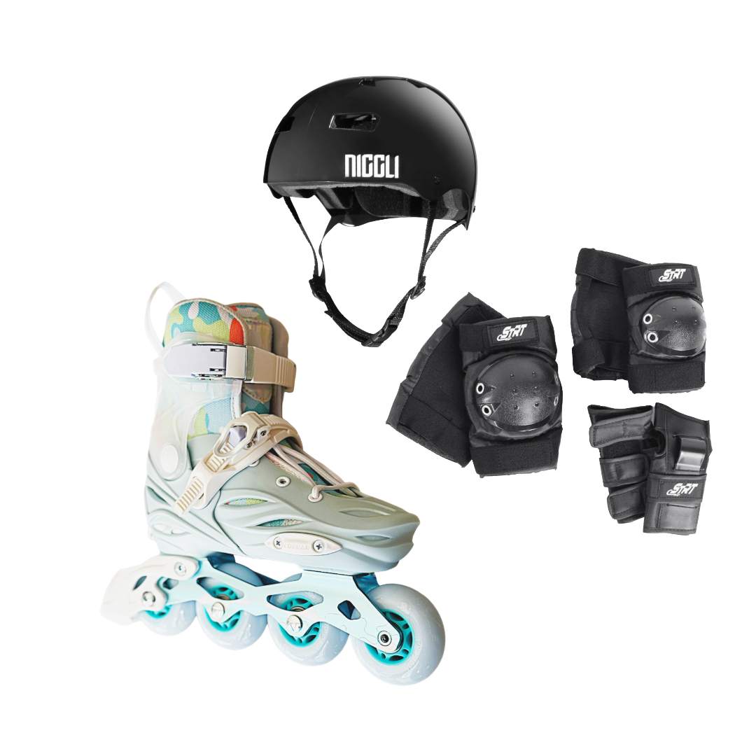 Patins Infantil X-Play Preto e Verde + Kit Proteção STRT + Capacete Niggli N1 Brilho R$1.349,00