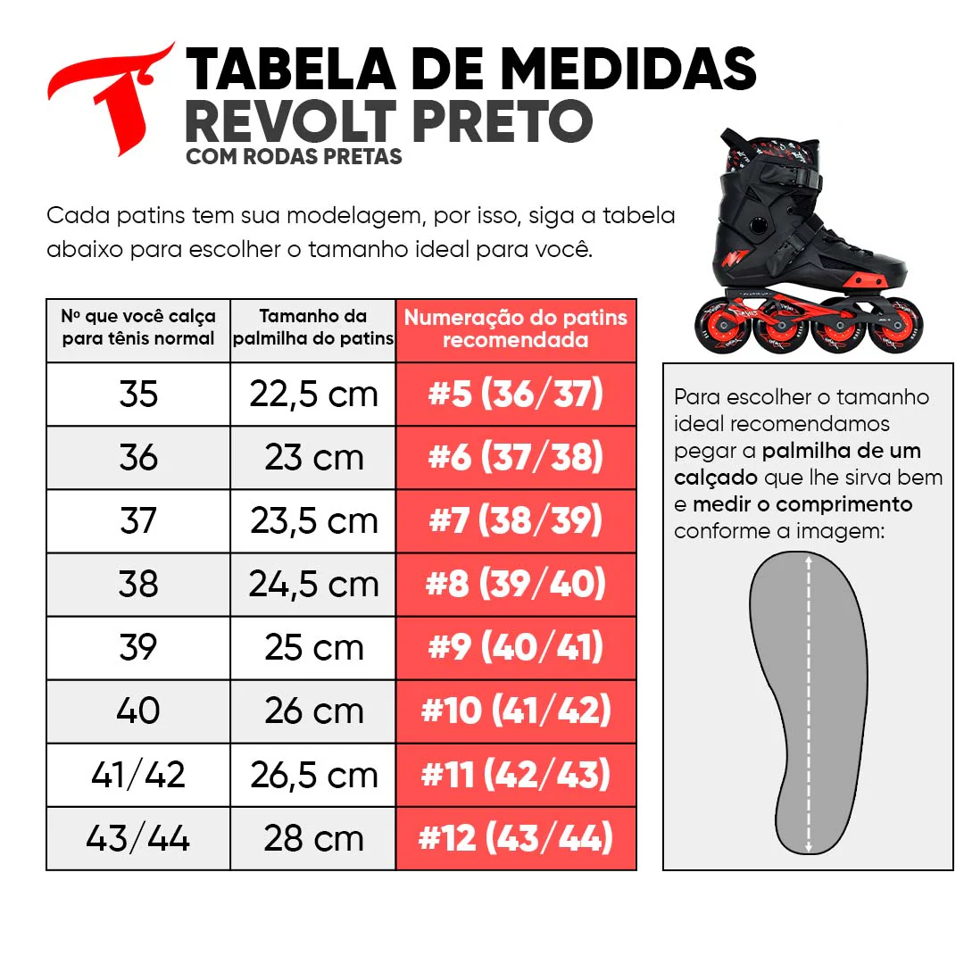 O modelo Revolt é um patins de bota rígida com design arrojado, ideal para a prática do urban. Conta com protetor para slide, sistema de absorção de impacto no calcanhar e bota interna acolchoada para maior conforto. Possui três tipos de fechamento (trava superior, cadarço e trava central) para mais firmeza. A base é de alumínio universal, as rodas são de PU 80mm, dureza 85A e cubo fechado, com rolamentos ABEC-9 que garantem maior velocidade.