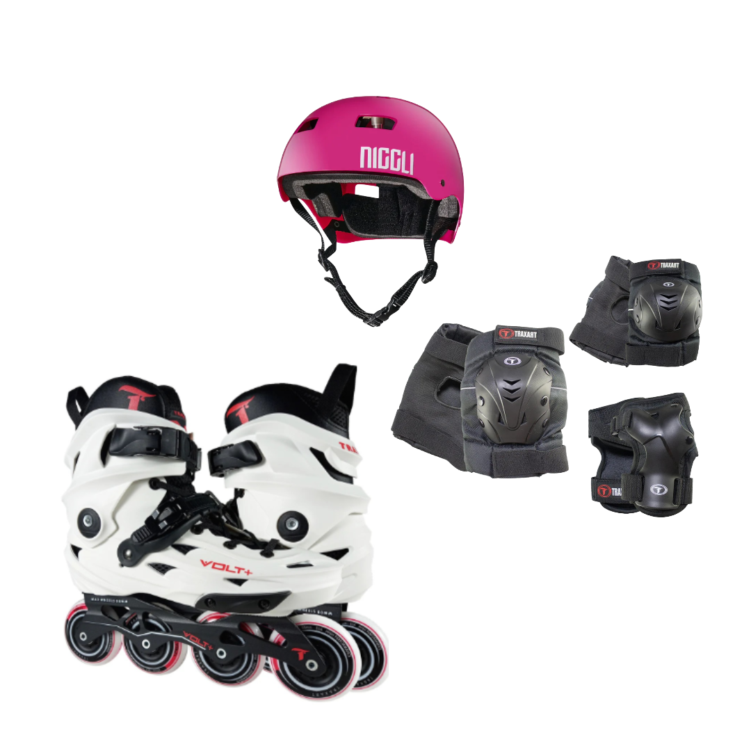 Patins Volt + 2.0 Branco + Kit Proteção Dr-029 + Capacete N1 Brilho